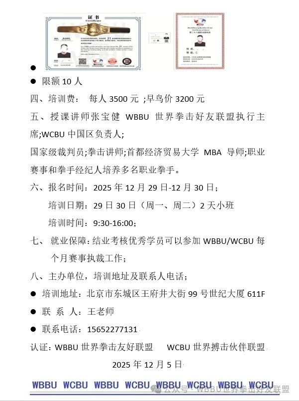2025年第28届WBBU&WCBU教练员、裁判员培训招生